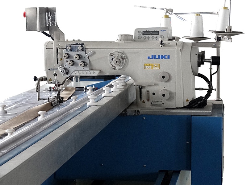 采用高頭特制全自動(dòng)剪線縫紉機(jī),德國(guó)西門子控制器,同時(shí)夾兩片布料,可實(shí)現(xiàn)一次縫合風(fēng)琴褶,二次風(fēng)琴褶與面布的縫合。工人在操作屏幕上輸入褶的間距、數(shù)量,設(shè)備便能自動(dòng)折疊縫制,縫紉的面料平整度好,效率高,12小時(shí)可生產(chǎn)180片/臺(tái)。